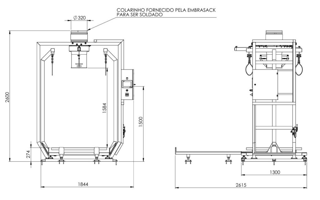 Equipamento empregado no ensaque de diversos produtos em sacarias do tipo Big Bag. O ensaque do Big Bag é realizado sobre balança plataforma e a dosagem do produto é realizada por gravidade, proporcionando precisão de peso e otimização da mão de obra.